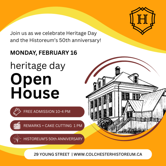 Join us on Heritage Day for our annual Open House as well as a 50th anniversary celebration of the Colchester Historeum as a museum.