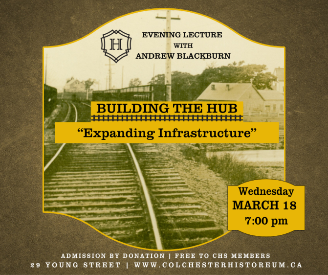 The story of the coming of the railway in 1858 is central to the history of Truro and Colchester County. This presentation, by CHS member Elinor Maher, will provide detailed background on the efforts to build a railway in Nova Scotia and the transformation that occurred as a result.