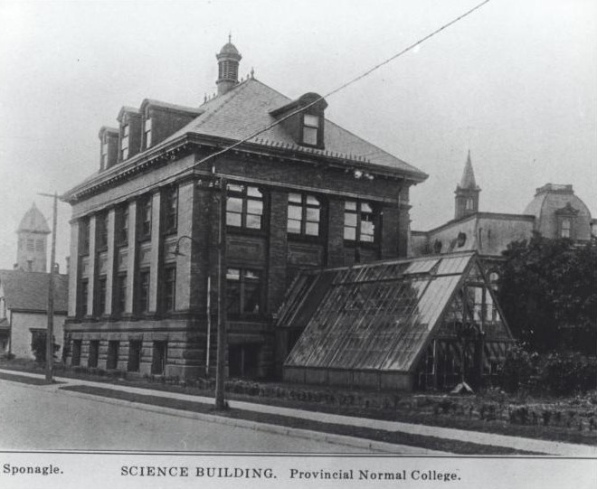 Our building was constructed in 1900 to serve as the Science Building for teachers-in-training at the Provincial Normal School (est. 1855). It was also used by the School of Agriculture (est. 1885) and featured a greenhouse at the south end for botanical studies.