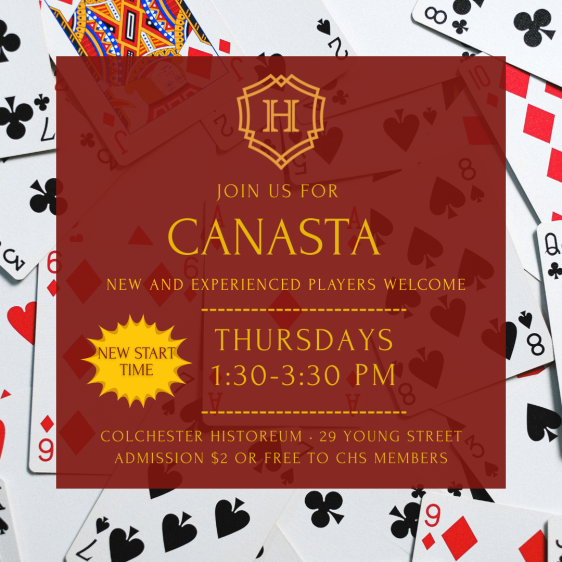 Join our Canasta card play every Thursday from 1:30-3:30 pm.