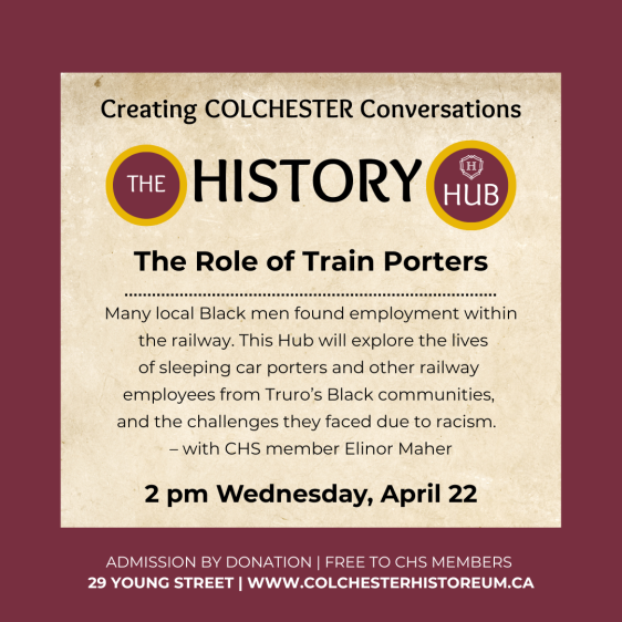Many local Black men found employment within the railway. As a continuation of the recent railway lecture series, this Hub session led by CHS member Elinor Maher will explore the lives of sleeping car porters and other railway employees from Truro’s Black communities, and the challenges they faced due to racism.