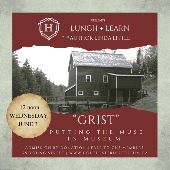 Join author Linda Little for a Lunch & Learn presentation as she recounts how her historical novel, "Grist", was born in the Balmoral Grist Mill where she worked for many seasons.
